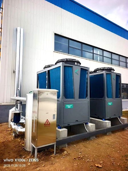 威海·3000平车间采用2台72匹哈唯全直流变频空气能冷暖项目安装调试完成